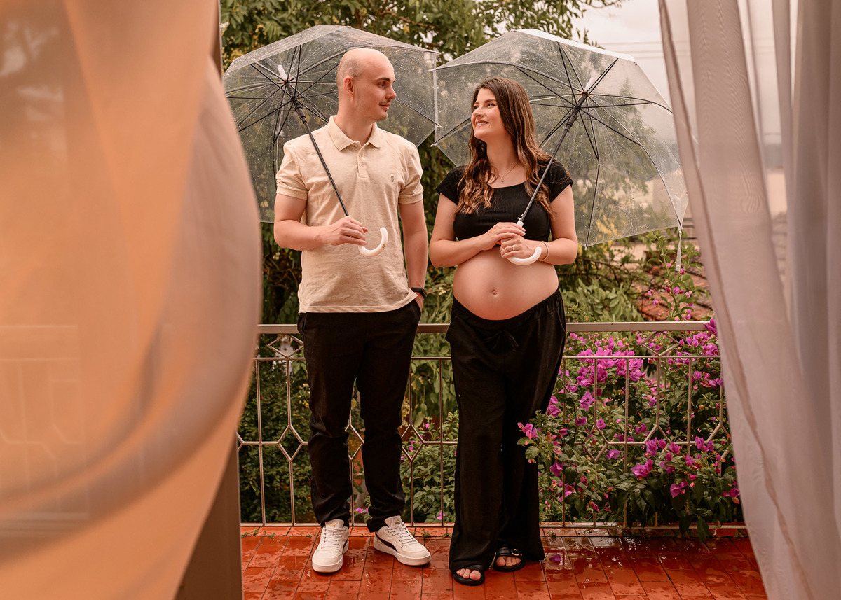A chuva trouxe uma atmosfera única: gotas no guarda-chuva, luz suave e um clima calmo que deixou tudo ainda mais sensível e verdadeiro.