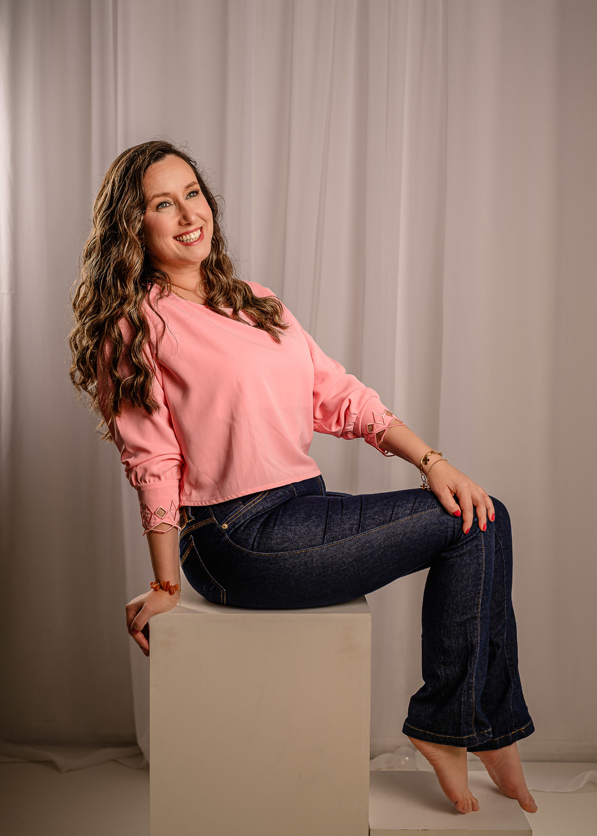 No ensaio da Kellen, nosso estúdio se encheu de luz, personalidade e uma feminilidade madura e vibrante. Cada clique refletiu não apenas um marco na vida dela, mas a beleza de se sentir plena, confiante e verdadeiramente conectada consigo mesma.